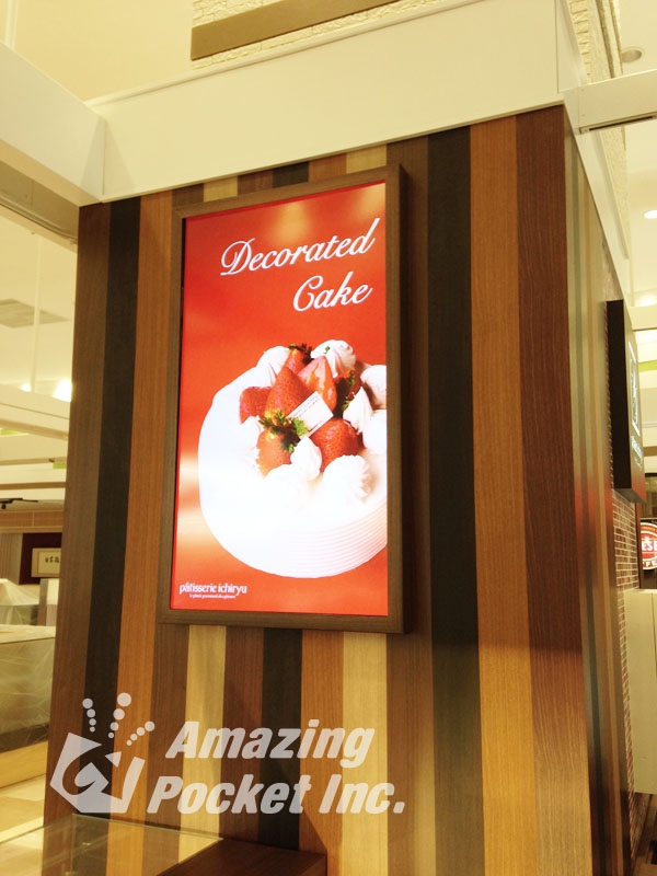 店舗内の柱2面に設置し、2画面同時放映で多方向へのアピールが可能となりました。