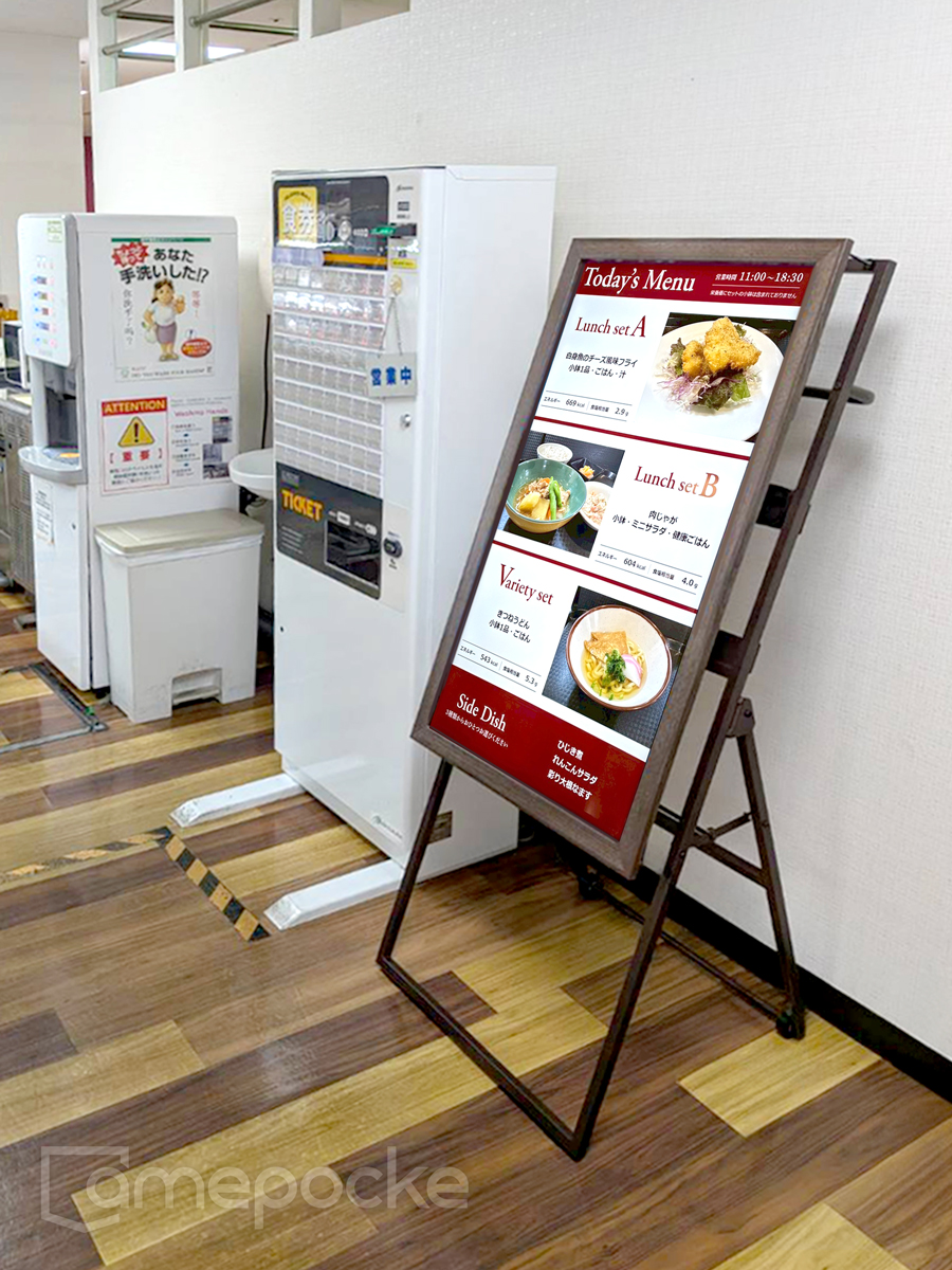 | 製品仕様・サービス | 屋内用43インチ 4K液晶ディスプレイ 1台(スタンド) 食堂メニュー表示システム |