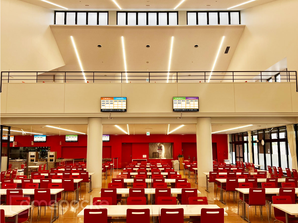 龍谷大学 瀬田キャンパス内 学生食堂「不二家食堂」の1階・2階に、呼び出し番号表示システム「Call Number」をご導入いただきました。
