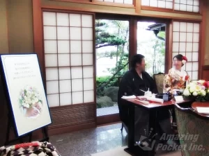 イーゼルスタンドなので場所を取らず、高砂の横にスッキリと収まっています。