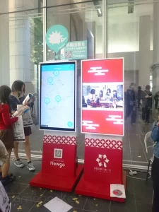 今回弊社は、デジタルサイネージ機器10台(屋内用4台、屋外用6台)、および iPhoneアプリの縦画面をそのままサイネージ縦画面に全画面表示させる仕組みをご提供させていただきました。