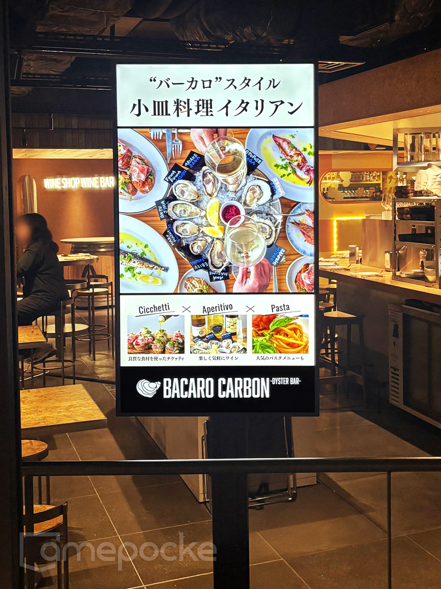 2025年7月、キャナルシティ博多 ホテルグランドハイアット福岡地下1階にオープンしたグルメストリート「KUOHKA」内の「BACARO CARBON oyster bar(バーカロカーボン オイスターバー)」にデジタルサイネージをご導入いただきました。