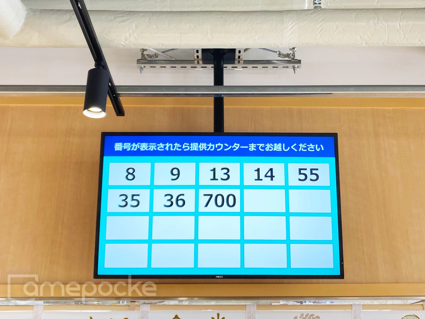 豊富なメニューと広々とした飲食スペースで多くのお客様で混雑されることが予想されますが、出来上がりをお知らせする呼び出し番号表示のディスプレイ4台はどの席からも見える位置にあり、さらに音声でも番号が呼び出されるので、料理の提供もスムーズにおこなわれ混雑緩和に繋がっています。