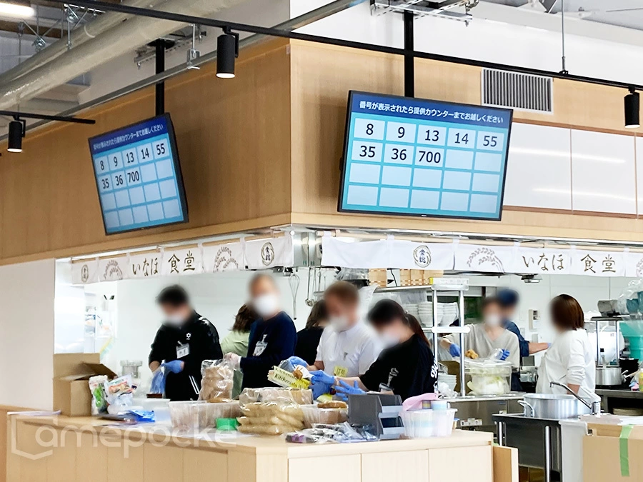 地元食材が手軽に味わえる大食堂の「いなほ食堂」に、呼び出し番号表示システムをご導入いただきました。
