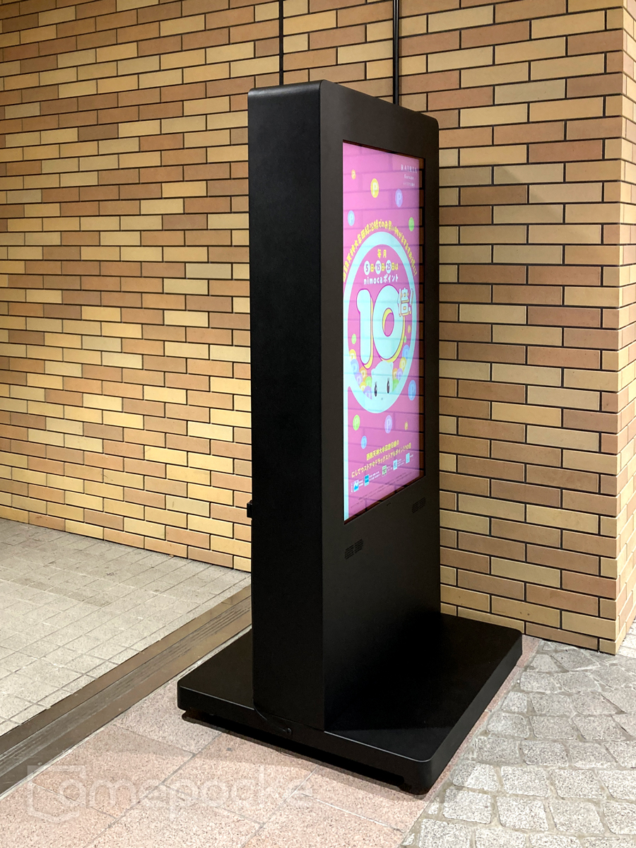 | 製品仕様・サービス | 46インチ 高輝度2,500cd/㎡ ハウジングスタンド(屋外防水仕様) クラウド配信 |