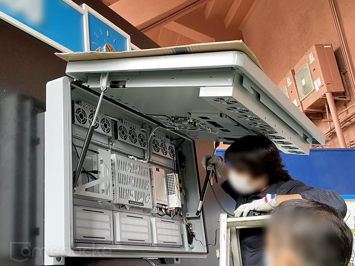 これまでは民生用液晶テレビを使用されていましたが、こちらはスタジアム外側の半屋外の場所で外光も入るため、屋外用ディスプレイ設置後は日中でも野球中継が鮮明に見えるようになったと大変喜ばれています。