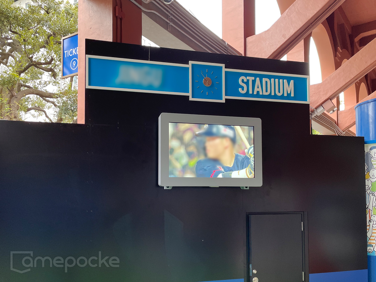 野球の試合中、喫煙所に来られる方々がゲームを観ながら寛げるよう、試合中継を放映するものです。