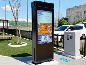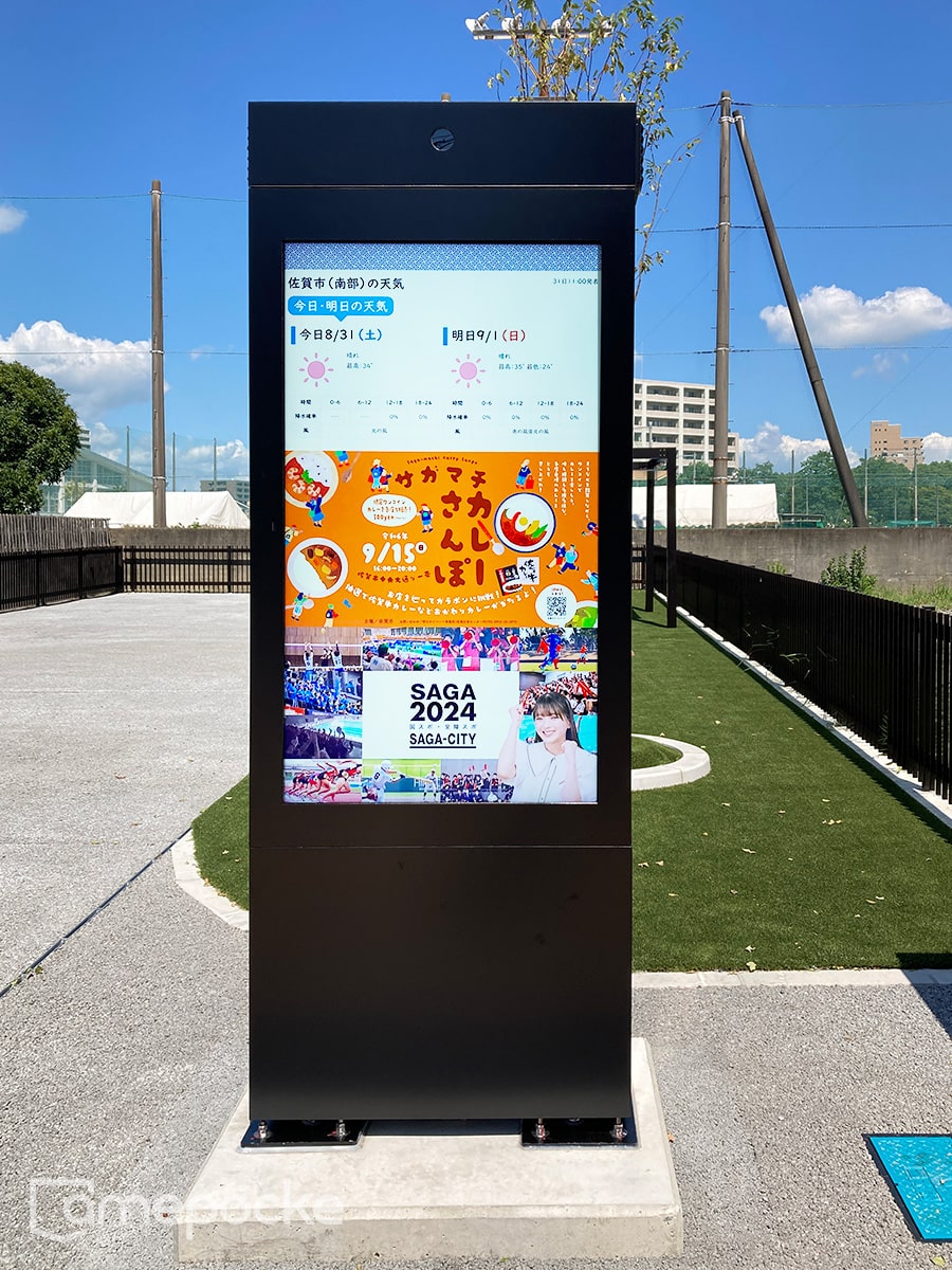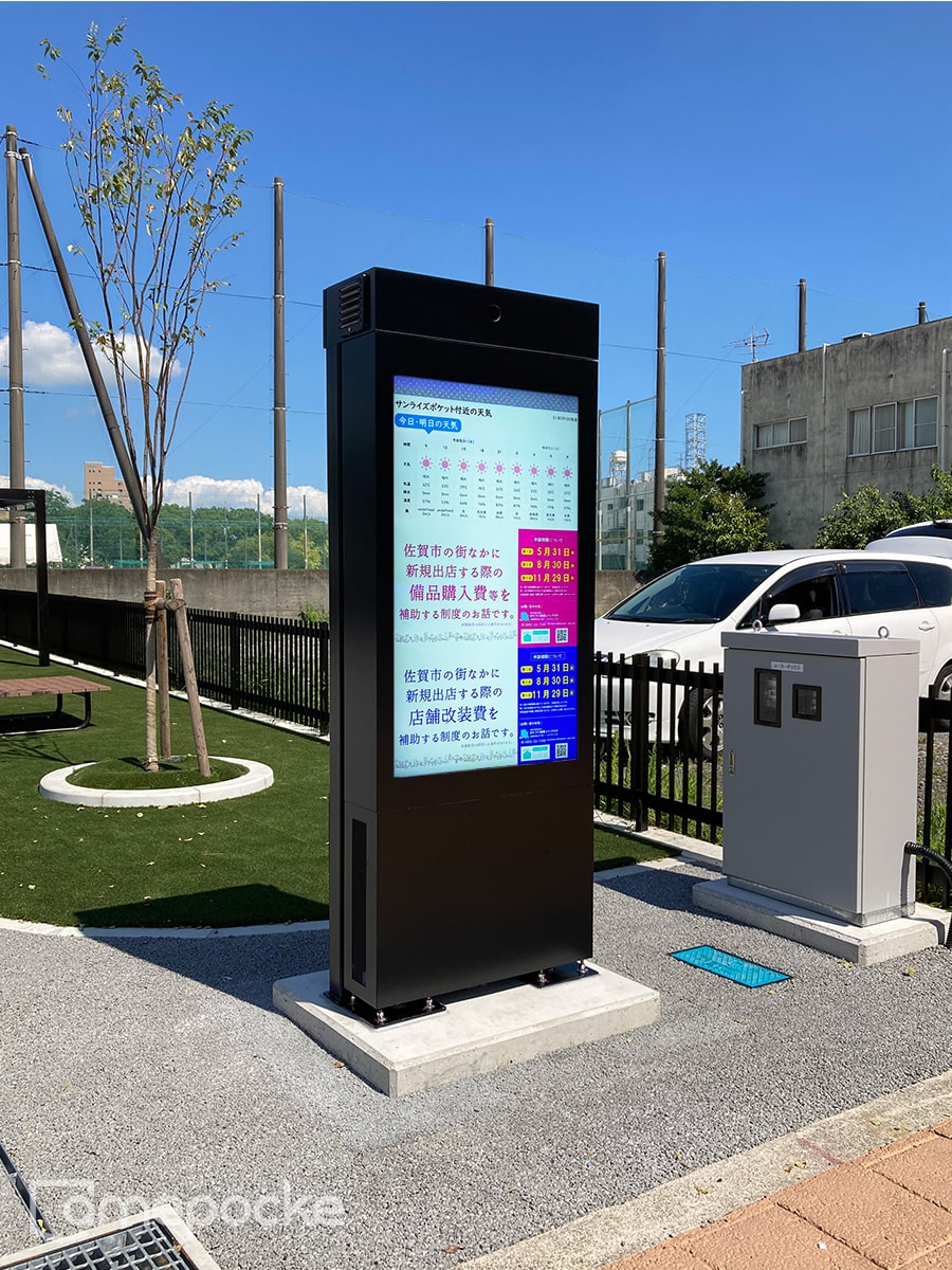 佐賀市神野東にある公共施設の公園「SUNRISE POCKET(サンライズポケット)」に、屋外防水仕様のデジタルサイネージ55インチ スタンド型を設置しました。