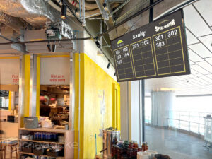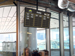 こちらのNorth棟5Fにある飲食スペース「SUPER RAW」に呼び出し番号表示システムを導入いただきました。