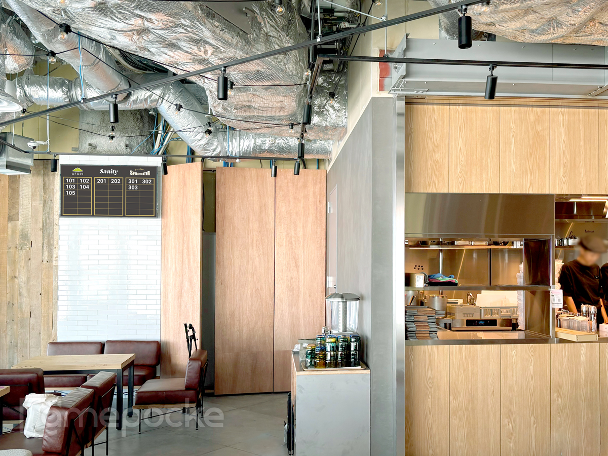 店内は本格スパイスカレーが味わえる『SPICE THEATER』、クラフトビール専門店『Sanity』、神奈川県阿夫利山から生まれた正統派の淡麗系らーめん『AFURI』の3店舗からなるフードホールです。