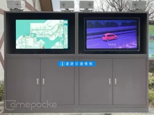 大分自動車道の由布岳パーキングエリア(上り)に、屋外防水仕様の49インチディスプレイを設置しました。