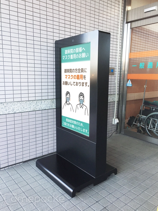 熊本県内の某 総合病院 救命救急センター入口に、屋外用デジタルサイネージをご導入いただきました。