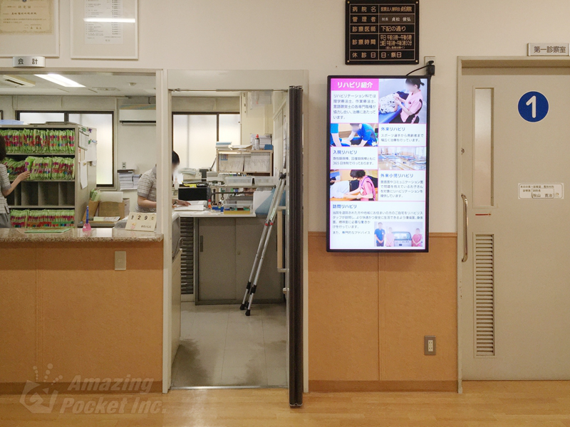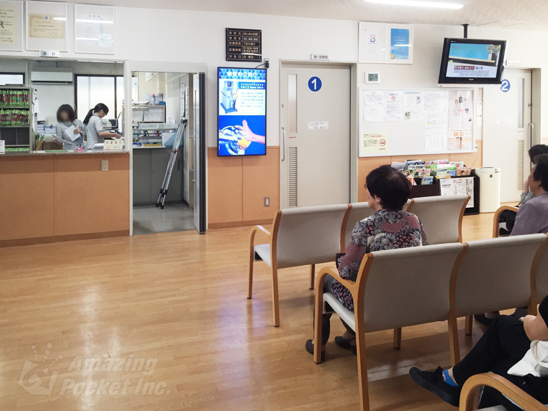 長崎県大村市にある「貞松病院」様の待合室に、デジタルサイネージをご導入いただきました。