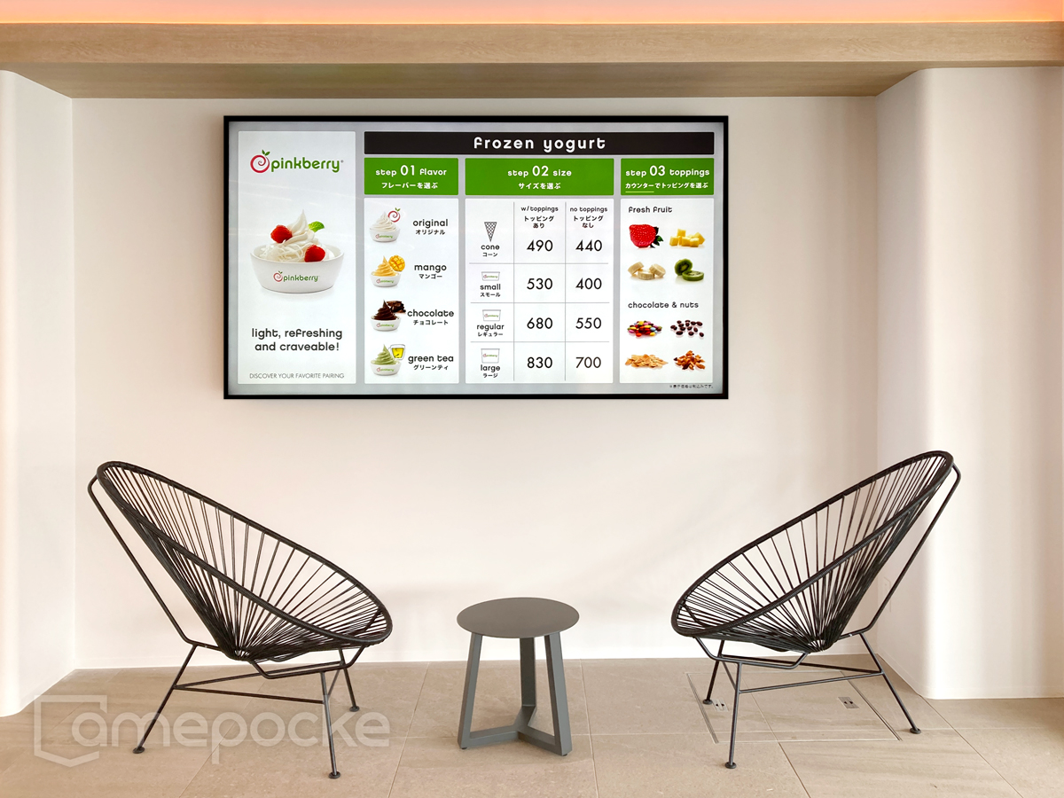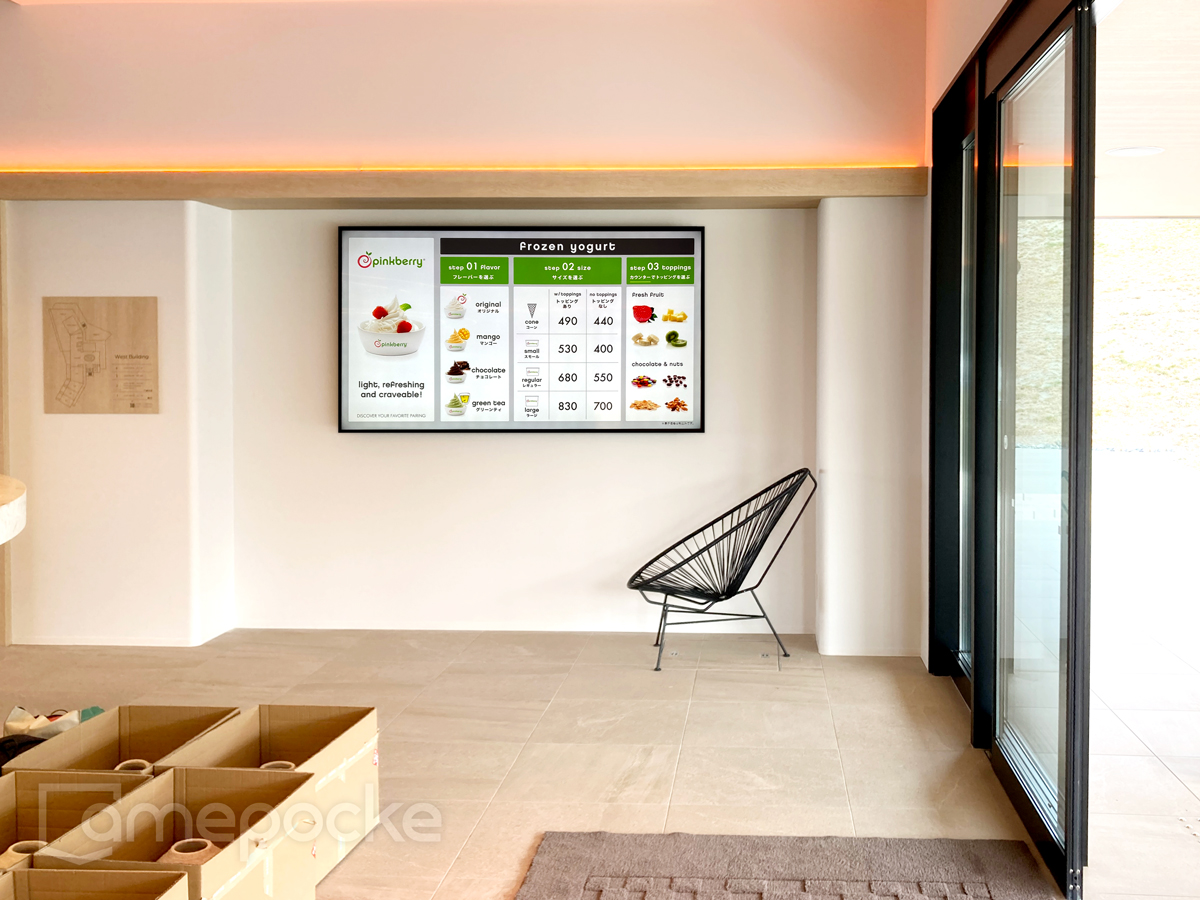 オープンに合わせ、ロビーとカフェスタイルで食事を提供するCafe & Food courtに、デジタルサイネージを導入いただきました。