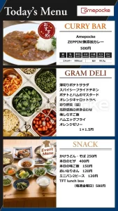 セットメニューや麺類、カレー、パンや焼き立てピザなどの軽食類に加え、食べたい分だけ盛ることができるグラムデリなどが楽しめる食堂で、ランチタイム以外にも開放され、ワークスペースにも利用できるおしゃれな空間です。