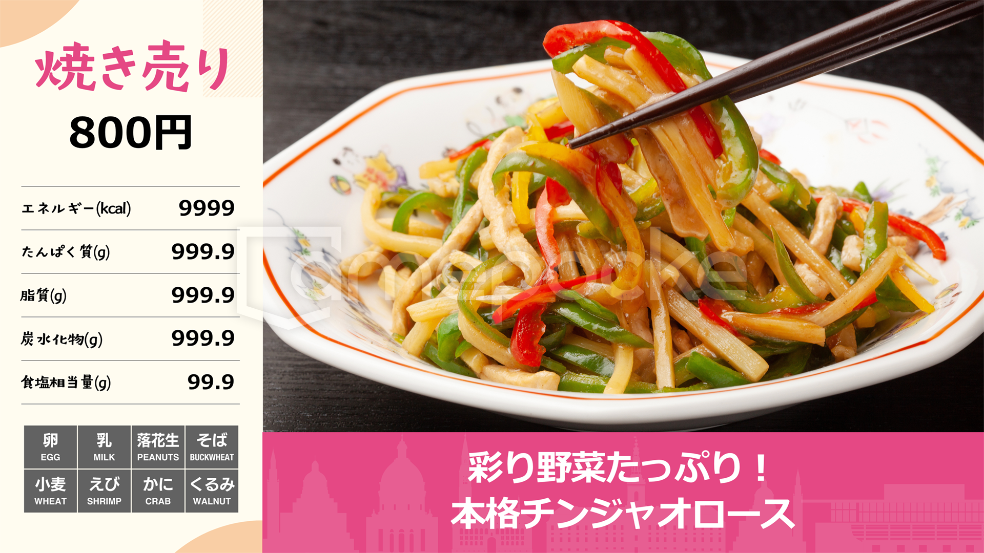 画像付きメニュー6枠に加え、副菜や小鉢を見やすく表示するためのフリーでテキスト入力できる枠を設置しています。