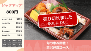 もちろん「売り切れ」や「準備中」などのバッヂは標準で搭載され、リアルタイムでパッと簡単操作で表示できます。