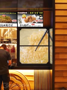 お客様に出来上がったメニューをスムーズに取りにきていただけるよう、広い店内には2台のディスプレイを設置し、呼び出し番号表示を行なっています。呼び出しの際は番号が表示されるとともに効果音がなる仕様で、お客様もストレスなく呼び出し状況を確認できます。