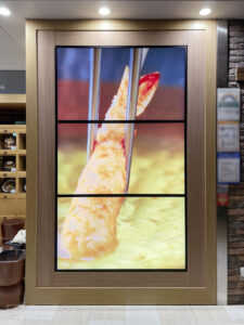 これまで数台並べていたパネルから、デジタルサイネージ2台に変え、店頭が広々とすっきりとしたのはもちろん、弊社で制作したコンテンツでメニューは見やすくなり、おすすめ商品もパッと見てわかりやすく訴求できています。