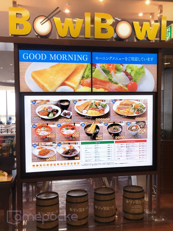 下部の80インチ ディスプレイでは、モーニングメニュー・グランドメニューを静止画でメニュー表示。