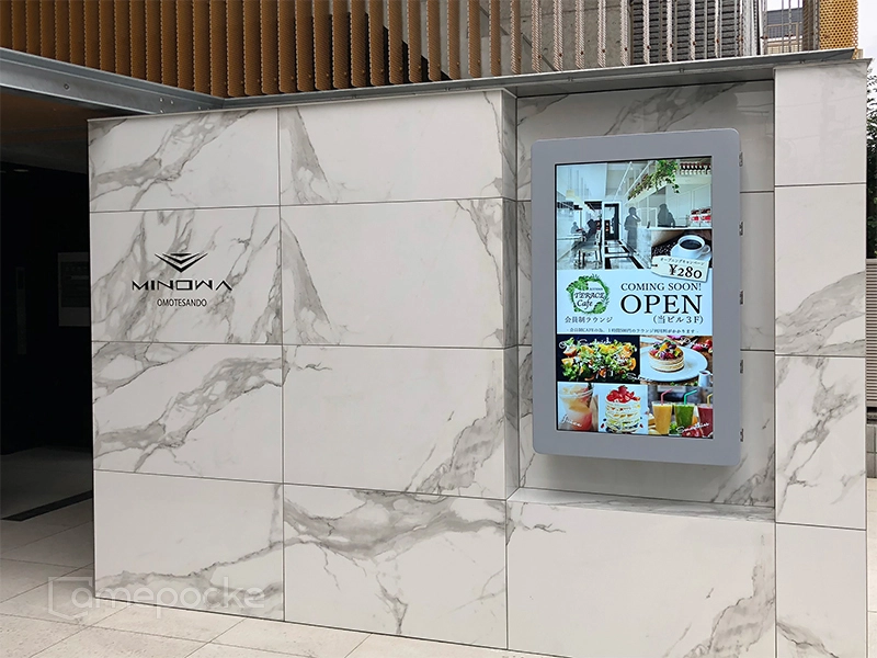 おしゃれなカフェや飲食店が立ち並ぶ 港区南青山3丁目に、2018年5月竣工のおしゃれなオフィスビルの1F壁面にご導入いただきました。