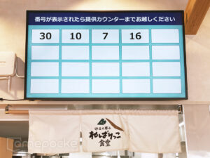 特に休日は多くのお客様で賑わう店内において、混雑の緩和と提供オペレーションの効率化を目的に、提供カウンター上 および 客席に1台ずつ呼び出し番号表示用ディスプレイを各1台ずつ設置しました。