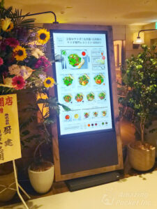 右側のディスプレイは縦全画面を使い、新鮮でみずみずしい野菜メインの動画を放映。