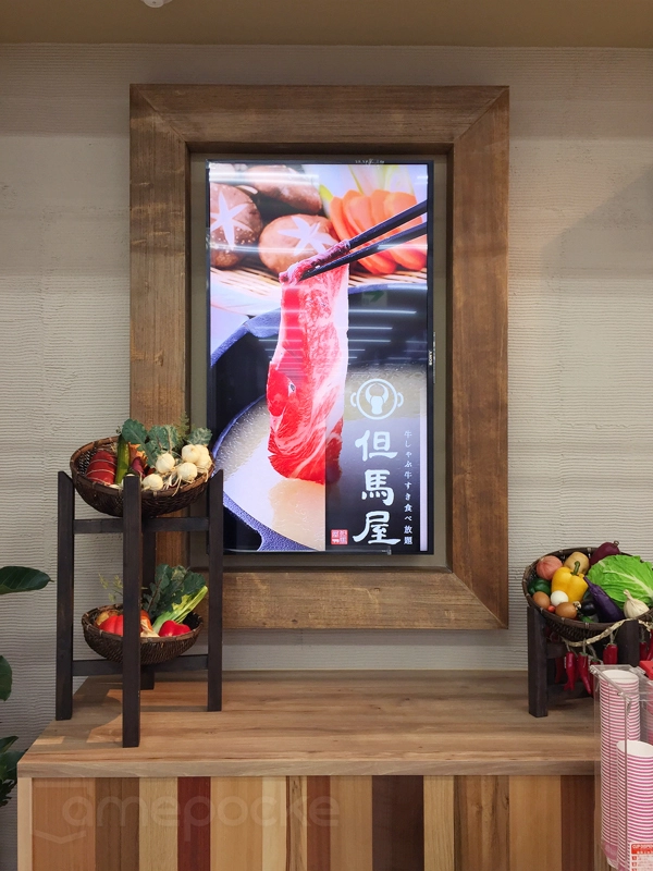 2017年12月にオープンしたスーパービバホーム 豊洲店2F『牛しゃぶ牛すき食べ放題 但馬屋』様にてデジタルサイネージをご導入いただきました。