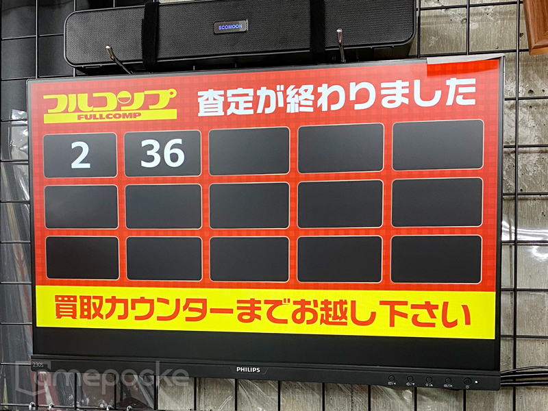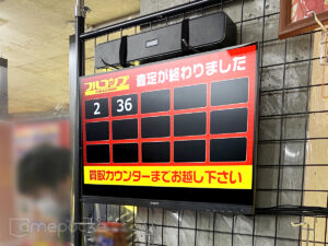 ガラスケース上のデッドスペースを活用した呼び出し番号の表示で、買取り手続きがスムーズに進んでいます。