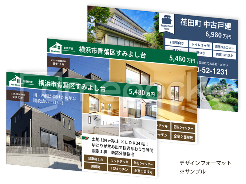 最新の物件情報はたくさんの画像を使い、動きがあってより目に止まるよう、またお客様で更新がしやすい 動画のデザインフォーマットをご提供しています。