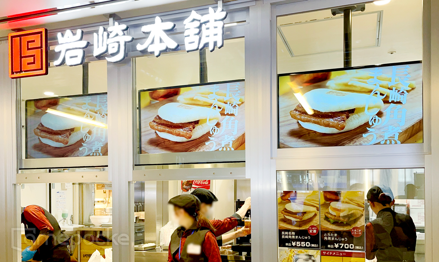 長崎スタジアムシティにお越しの際は、スタジアムグルメの代表格「岩崎本舗」の角煮まんじゅうをぜひご賞味ください。ここでしか味わえない限定メニューと、動きのあるデジタルサイネージが、訪れるすべての方をおもてなしいたします。