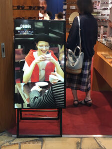 デジタルサイネージでは、高品質でスタイリッシュなアイウェアを映像でご提案しています。