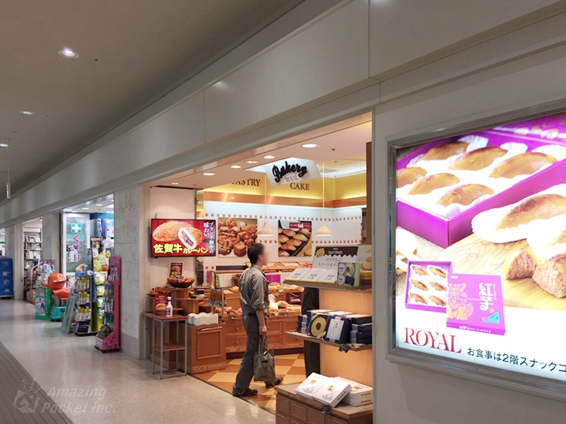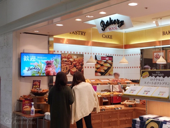 那覇空港 国内線旅客ターミナルビル2Fにある、『ロイヤルベーカリーショップ 那覇空港店』様店頭にデジタルサイネージをご導入いただきました。
