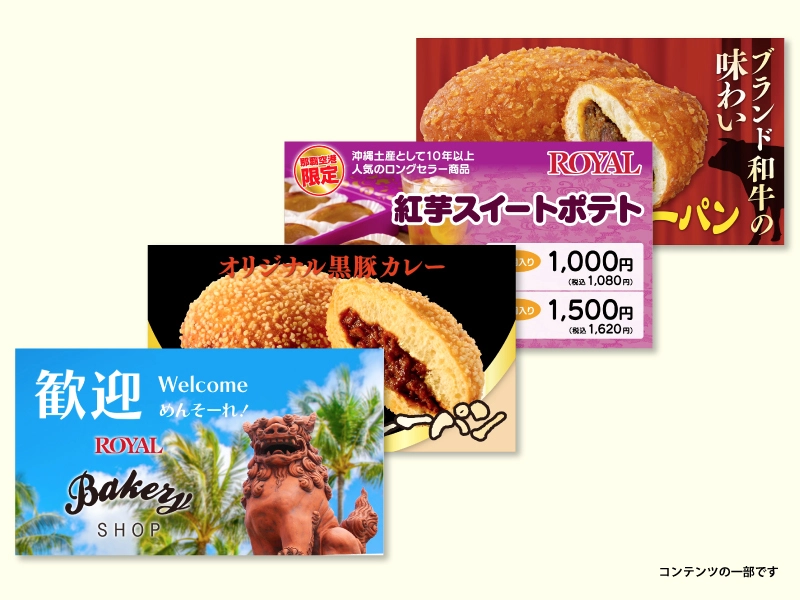観光客や地元のお客様から絶大な人気の沖縄限定 ”紅いもスイートポテト”や、黒豚カレーパンなどおすすめ商品をご紹介するコンテンツも、アメイジングポケットで制作しております。