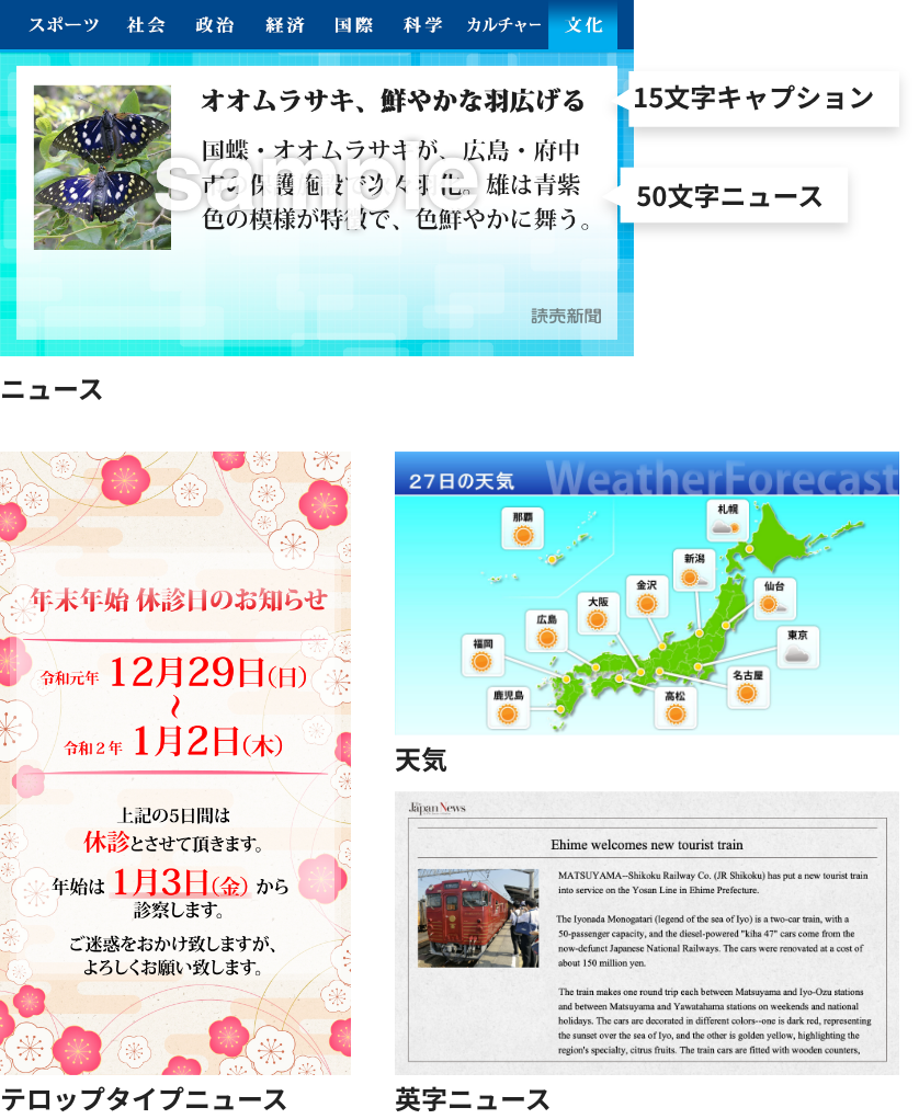 常時お知らせしたい情報は、テロップで流すこともできます。