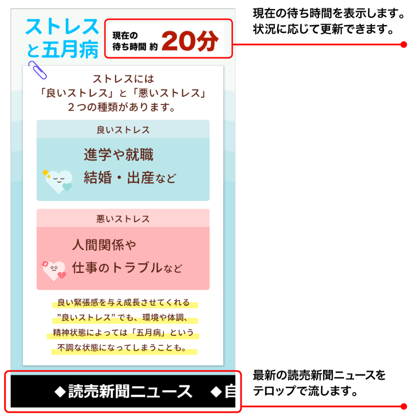 待ち時間表示/読売新聞テロップニュース