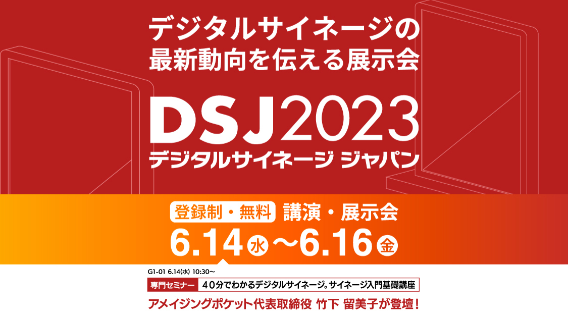 | DSJセミナー | G1-01 40分でわかるデジタルサイネージ。サイネージ入門基礎講座 |