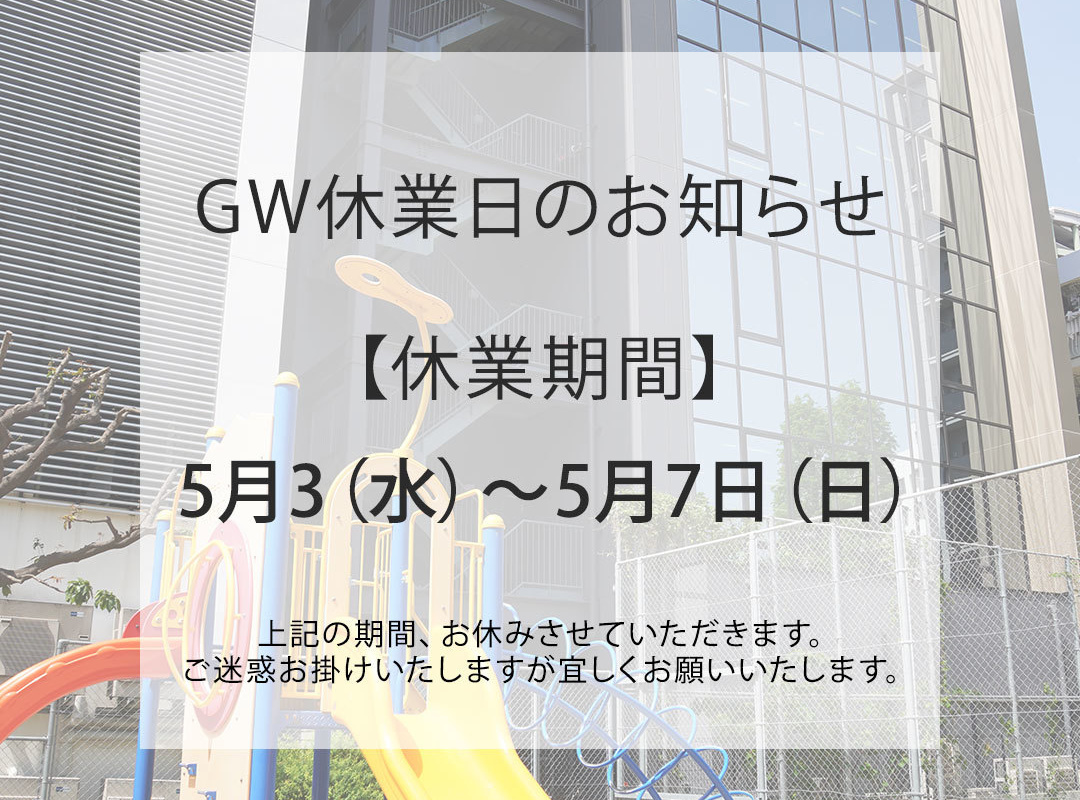 弊社のゴールデンウィークの休業日は、5月3日(水)~5月7日(日)までとなります。